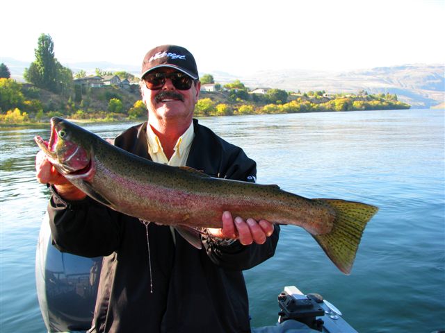 My fishing buddy Rollie Schmitten netted this hatchery steelhead for me, while we were fishing bobbers and jigs near Bridgeport