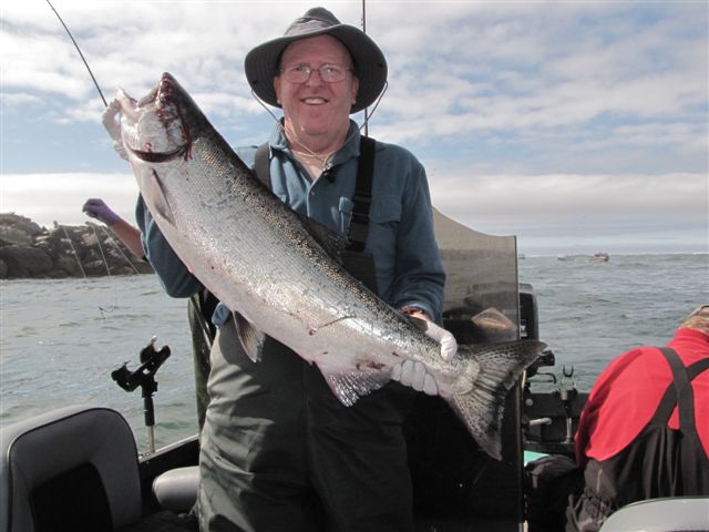 Mike Kitner, of Wenatchee, got a limit of one king and one coho while fishing with Richard Robinson in the "Jaws", where the Nehalem meets the Pacific.