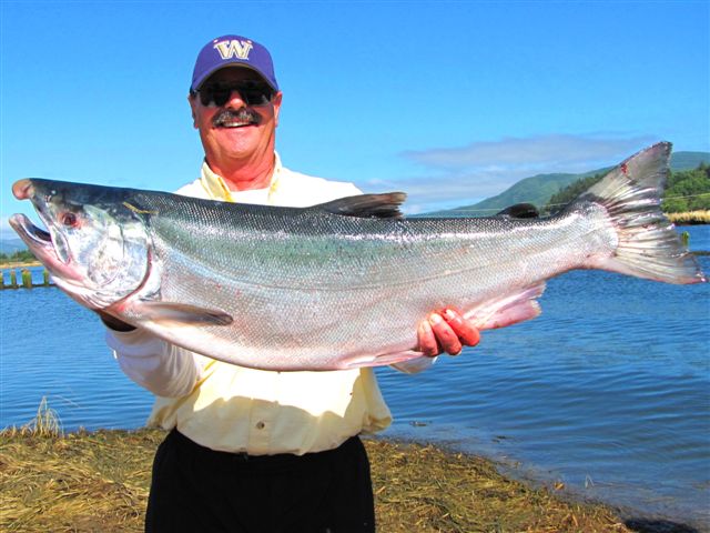Kevin Winters, of Leavenworth, shows off the 35-pound king he landed while fishing with Richard Robinson, also of Leavenworth. Robinson was a top guide in this area and he hasn't lost his touch.