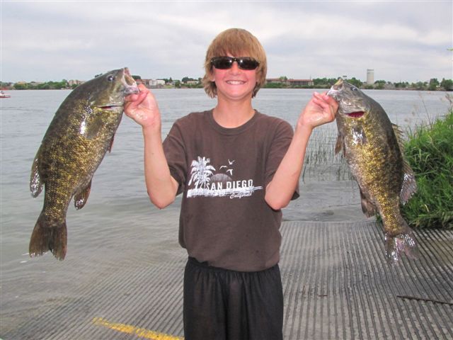 Cody Jordan holds up two dandy smallmouth bass. He won first place in the youth division in the Central Washington Bass Club tournament on Moses Lake.