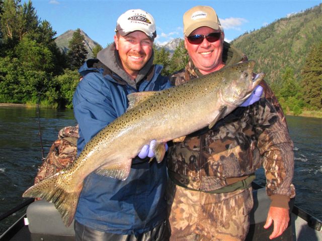 Dave Crollard poses with Shane Magnuson, Upper Columbia Guide Service, with a nice spring salmon he landed on the Icicle River.