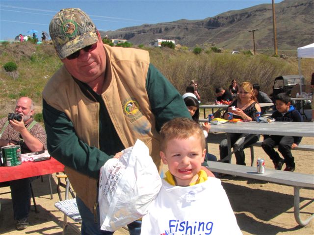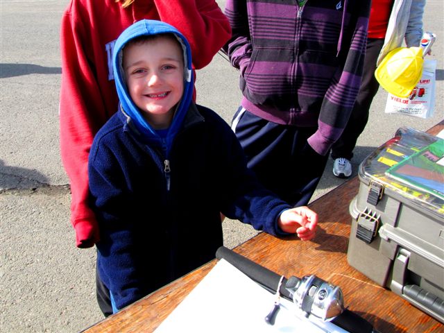 This is one of the happy winners of prizes for catching a big fish or placing high in the casting contest at the MLIRD Trout Derby at Connelly Park.