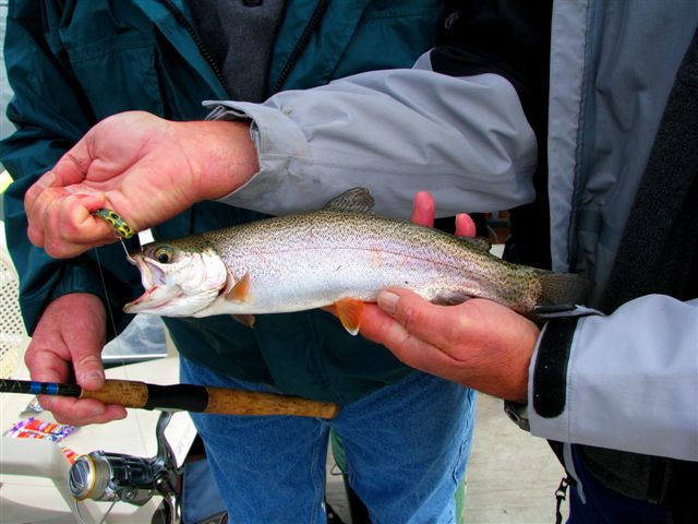 On a recent trip to Fish Lake, near Lake Wenatchee, my fishing partner and I caught large numbers of rainbow on a variety of lures. This one hit a fly.