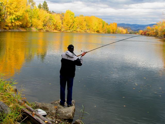 There was a great hole below the Guest House, but it was full of Chinook salmon when I stopped there, and the river was full of leaves, too.
