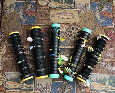 I have been busy writing my E-Letter for Spring. I have that pretty much wrapped up and ready for final editing. It is a monster. Lots of detail in this one. If you aren’t getting the free quarterly E-Letter and would like to sign up, just go to my web site Home Page at FishingMagician.com. and click on the E-Letter button on the top left hand side of the page. It’s pretty simple and you will be added to the list and get the free E-Letter every time it’s sent out. You can unsubscribe at any time. With time on my hands to get my tackle organized, I wanted to share with you the device I use for my walleye leaders. They are pretty simple, and there are a couple of companies that make them. The idea is that you anchor the leader by its end, and I usually have a swivel on the end of my leaders, and then wind them on the “tube”. Each tube holds 12 to 15 leaders. I have five of them that all fit in the top of my tackle box. Everything from naked Slow Death Hooks to spinners all go on the tubes. See the photo on my Facebook Page, too.