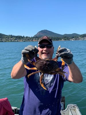 For FishingMagician.com, I'm Eric Granstrom. Leave it to my wife to come up with yet another great idea. Last Wednesday, she suggested we scrap weekend plans of working around the house and head to the west side and do some crabbing. Eager to fill a cooler full of sweet-tasting dungeness, I jumped at the chance. After arriving for a filling dinner at my Dad's house Friday night, we had to wait until nearly noon Saturday before heading across Deception Pass Bridge onto Whidbey Island to launch at Coronet Bay. It was me, Marion, my Dad and my 14-year old niece Carlie. Our ride to the crab grounds was a 16-foot Smoker Craft Alaskan we lovingly refer to as the "Jimmy Boat." We call it that because Dad bought it from our good buddy Jimmy Grover. Soon, 7-pots were in the water just off Hoypus Point. We had the electric pot-puller on board that mounts to your Scottie downrigger base. Carlie got a workout hooking the line and sorting crab with Dad while Marion and I watched and smiled. We ended up with four limits of rock crab and just two shy of four limits of dungeness. What a day! Until next time, Good Fishing!