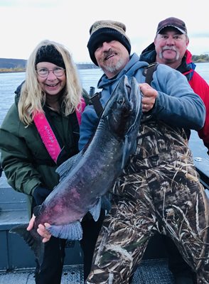 Commissioner Barbara Baker (left) joined me at Vernita and learned the excitement of landing an upper Columbia Salmon.