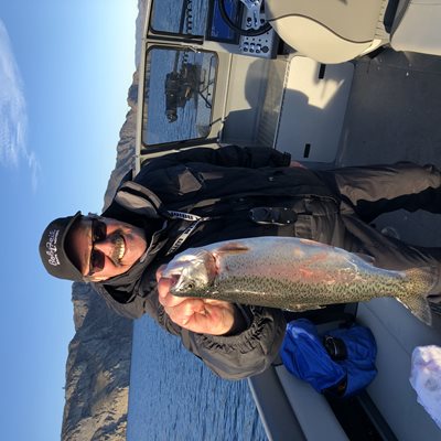 I had some doubts about going to Keller and trolling for kokanee on Lake Roosevelt last Thursday. The fact that it wasn’t going to be snowing and there wasn’t going to be much wind made that particular day the best choice for the week. The reason for hesitation was that there was a full moon and a big shift in temperature. This combination has worked against me in the past. Still, I talked Tom Verschueren into making the long drive to Keller. We ran from the launch up to a spot above the mouth of the San Poil. There were a bunch of boats here when we arrived. The first one that passed near us yelled that the fishing was very slow. We had just put out our gear and actually got a fish fairly soon. It was a red band rainbow that we released. We got several hits, lost a couple of fish and retrieved Kokabow blades and spinners that had been striped of corn, and released another red band. I decided to run down to Camel Nose to see if it was better down there. Tom reeled in a nice rainbow that I kept for dinner and we headed for home.