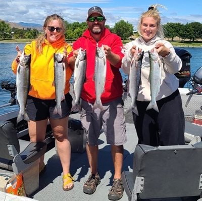 For FishingMagician.com, I'm Eric Granstrom. Fisherman who gather below Wanapum Dam are prepared for a wild ride. This is the time of year the spill gates are wide open, releasing a torrent of water through the Grant County PUD facility. It makes for a bumpy, and sometimes dangerous ride for anglers trying to find a willing sockeye salmon to bite. Further upstream, anglers are used to a more serene setting while fishing below Rocky Reach Dam or Wells Dam. Rapid snowmelt in the mountains and high stream flows have made even these places a little dicey right now. I heard from several anglers who went out for the opener of sockeye salmon fishing here on the Upper Columbia yesterday that the waters below Rocky Reach Dam were very turbulent. This is a relatively small stretch of water to fish to begin with and maneuvering your boat is a challenge, especially if there's several boats in the vicinity. So be careful. If you check out our Facebook page, you'll see nice limits with Brad Wagner of Bobber Down Guide Service and his daughter's Brooke and Lizzy as well as Mike Roth of Team Takedown Guide Service. Until next time, Good Fishing!