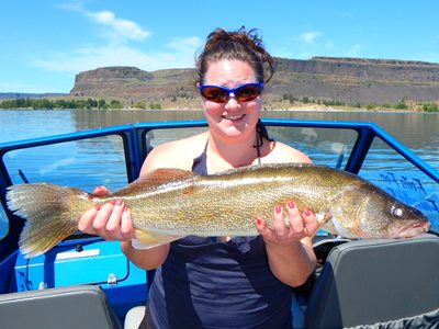 I finally got some reports from Banks Lake on the walleye fishing, and it was good! My brother Rick and cousin Greg were on Banks earlier this week, and in spite of some heavy chop got limits of walleye. The first day they pulled spinners in Devils Punchbowl and found the fish in 12 to 14 feet of water. They found a willow leaf blade with blue and pink beads, trolled behind a bottom bouncer worked the best. The following day they got their limits of walleye with the same set up on Barker Flats. There was a two-foot chop with heavy gusts, but the walleye were biting aggressively. My fishing buddy and guide Brian Nielson also had success on Banks. He said he got his fish trolling the Dutch Fork Lures Blue Tiger Turtle Shell blades behind a bottom bouncer. Forecasts for very high winds kept me off the water on Banks this week, but I am going to get up there as soon as possible to get in on the good walleye action. I will be following the advice of these guys and try Devils Punchbowl to start and then if conditions allow will run over to Barker Flats.