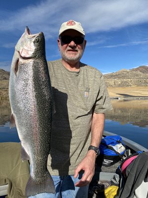 I was out of action in terms of fishing much of last week, due to Commission meetings. My brother Rick did get out on the water, though, and had some terrific fishing, when the weather cooperated. He and my cousin Greg Preston decided to focus their fishing efforts on Rufus Woods Reservoir, and it turned out to be a great choice. They fished for two days on the upper end of Rufus Woods and trolled below both the upper pens and the next set down. They got lots of triploids from 3 to 6 pounds, and also caught some nice walleye while they were at it. They were trolling either naked Slow Death Hooks baited with nightcrawlers or tandem hooked spinners and crawlers. One of the things that they learned on this trip was that they could catch fish just as easily or maybe even better by trolling upstream. I have always trolled downstream, and since I was catching plenty of fish, would run to the top of the fishing area after reached the bottom end. Now I know I can just turn the boat around and troll back up to the top end. I can’t wait to get back up there.