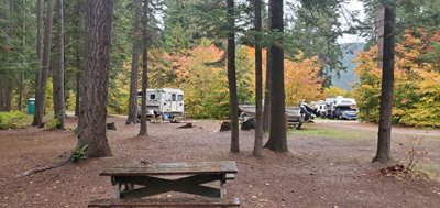 For FishingMagician.com, I'm Eric Granstrom. Sometimes the best trip is the one you don't take. Marion and I were loaded up Friday with the boat and camper for a weekend adventure. I had checked the forecast earlier in the day and warned her it was going to get ugly Saturday with high winds and rain. She suggested we switch plans and instead of heading for Grand Coulee we point towards Fish Lake near Lake Wenatchee. So that's exactly what we did. Darkness was just falling Friday night as I lit a campfire at The Cove Resort. It was a beautiful night as campers throughout the grounds celebrated an end to summer and fall's awakening. The pitter-patter of raindrops roused me from my slumber during the night Friday night, so I had an inkling that fishing would not be in the cards Saturday. Sure enough, the rains continued to pound throughout the day with winds off and on. So we didn't do a thing. We lazed in the camper, ate, listened to music, and took several naps. It was simply fantastic. Sunday dawned with winds whipping again so we headed for home without wetting a line. It was a great fishing trip! Until next time, Good Fishing!