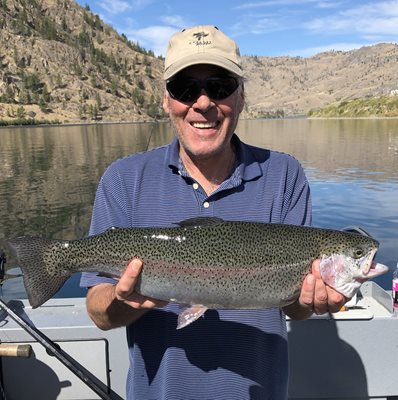 Bill Hansen with one of the triploids he landed, along with some very nice walleye on Rufus Woods Reservoir.