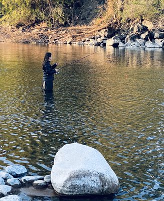 Here’s my niece Sophie Graybill casting a bobber and jig for salmon on the Wenatchee River.