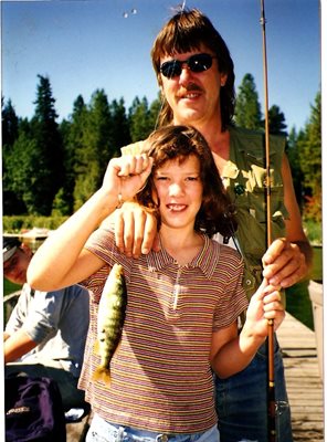 Greg McEwen poses with his daughter Cami at Fish Lake near Lake Wenatchee. Cami is holding up the first fish she ever caught, many years ago. Hopefully families with have a similar experience over the Free Fishing Weekend.