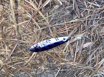 This is the spoon that worked for the angler on the Icicle. It’s a Kingfisher with the treble hooks replaced with a single siwash.