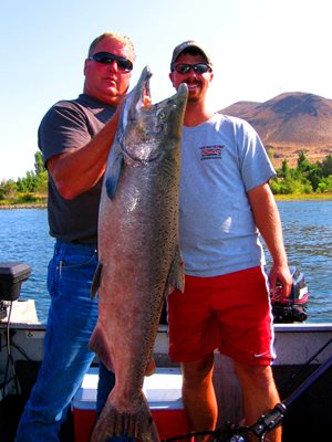 Dan Schliffers hefts a whopper king taken while fishing off Crab Creek with Shane Magnuson in a past season.