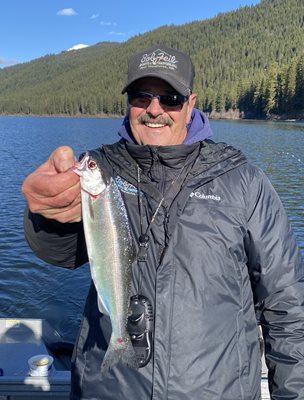 After five days of snow recently, I think that we are finally on our way to spring up here in Leavenworth. The last bit of snow just melted off my front walk. This has to be the longest winter I have experienced in my over 20 years of living up here. I had been watching the forecasts for a break in the weather, and to my surprise it was going to be clear and calm at Fish Lake, near Lake Wenatchee on Sunday. I had been waiting for just such a day to see if I could catch some of the kokanee that were planted in the lake. In June of last year, the WDFW put 63,000 kokanee in Fish Lake, and I heard that there were some taken through the ice last winter. I figured that the kokanee would be in the middle of the lake and deep. I was wrong. The first fish we got was a 15-inch brown trout. When I brought the gear up to less than 20 feet we got some kokanee on my favorite Kokabow gear. The kokanee were a sleek 12 to 13 inches. Here’s another good reason to try Fish Lake!