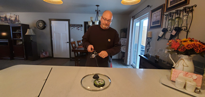 For FishingMagician.com I'm Eric Granstrom. This may come across a little conflicted, but I'm not a big fan of social media. Now, many of you are reading this on Facebook so you're probably thinking, "yeah, right Eric!" My wife has become a big fan of Tic-Toc. If you're not familiar, it's an app showing videos of 60-seconds or less. It's mostly entertainment but there's a little information and a few life-hacks on there too. One that Marion sent me is actually pretty cool. If you have a tempered glass breathable frying pan lid, you can use it to help spool line on a fishing reel. You take the spool and feed the line through the breather hole from the bottom. Then you put the lid over the spool on a flat surface. Then, you run the line through your fishing rod guides and tie it onto the spool of your reel and load it up. The line spool will bounce around harmless with no tangles beneath the pot lid. I put together a short video of me trying it at home on our Facebook page. We'll see what social media can teach me next. Until next time, Good Fishing!