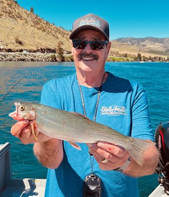 I have been busy chasing walleye and smallmouth bass at some of our big reservoirs lately, so it has been weeks since I got out on Lake Chelan. I still have room in my freezer for more kokanee, and I like to have a bunch for smoking, and I also like to make fish cakes with them. My wife and I weren’t in any hurry to get to Chelan, and we arrived at the launch above the Chelan dam mid-morning last Friday. I was surprised to see some open trailer slots in the parking lot here, and since we were going to fish off Lakeside Park this put us close to our destination. I put out four rods off the park and were into fish immediately. However, there were a lot of cutthroat in this area, and we caught several before landing our first kokanee. I trolled up the lake toward Pleasant Beach, catching fish all along the way. When we got above the Blue Roofs I started marking kokanee schools very deep. I didn’t get any more cutthroat up here and we landed more kokanee. Kokabow blades and spinners did the trick for me once again.