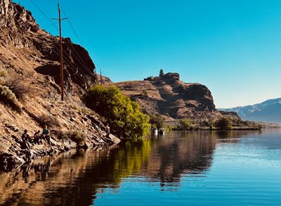There were several people fishing from shore and other boats anchored above Rocky Reach Dam.