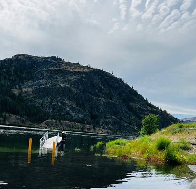 The boat launch at the Colville Net Pens site is under water, and there isn’t much shoreline to fish from here.