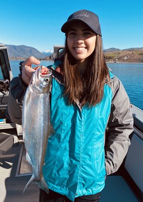 I wanted to give Lake Chelan a try for kokanee and asked my fishing buddy Brian Anantatmula to come along. He brought his daughter Jaya and her friend Ryan Neilson, and the four of us drove up to Mill Bay. The weather turned out to be even better than expected. Sunny skies and no wind—Yea! We ran down the lake to Rocky Point, where we saw a number of boats trolling around. We got a fairly slow start, but when we got over to the other side of the lake, above the Blue Roofs, things changed. One of the first fish that Jaya landed was a pump 14-incher, and we had pretty steady action for a couple of hours. Once again, the Kokabow Copper Series Inferno blade and Ravisher spinner or Talon squid combo was hot. This is always a winner on Chelan. The fish were as deep as 80 feet and as shallow as 40. We had to be off the water by noon, and when headed for the dock we had 22 nice kokanee in the cooler. We had a good number of 14-inch kokanee included in the catch. I can’t wait to get back up there. What fun!