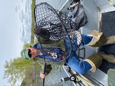 My good friend Jim Passage called a couple of weeks ago, asking me if I would like to join him for a day of fishing at “Back to the Wall”. This is a private lake, managed by Darc Knobel, owner of the Desert Fly Angler Fly Shop in Ephrata. I had fished here many years ago and caught so many fish my hand cramped so badly I had to quit. I cleared my calendar to be sure I wouldn’t miss the chance to fish here again, and to spend the day with Jim. When we arrived Darc was there to greet us. We launched Jim’s 14-foot Lund and headed out. Jim had been here a couple of times already this season, and he had the fishing figured out. We trolled black-patterned flies on sinking lines and were into fish immediately. Our flies were getting whacked constantly and we hooked and released a bunch of rainbow. I joked that if I hadn’t had a hit in two minutes something must be wrong. The trout were all very hefty 15 to 17 inches long. I was glad I made the trip as the spring season is closing. It will reopen in the fall.