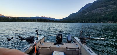 For FishingMagician.com, I'm Eric Granstrom. Not sure if it's the full moon or what, but fishing Lake Wenatchee sockeye was a tough go the last two mornings. I slept on my boat Monday night and was up early Tuesday, bobbing around in the pre-dawn darkness trying to see. There wasn't really enough light for "fishing" until 5am. It wasn't until 6:15 that I got my first bite and lost EVERYTHING. More on that in a moment. I finally hooked up and landed a fish at 8:15. One more bite at 8:30 and that was it for the day. That is until I brought in my rod off the downrigger and lost EVERYTHING again! Come to find out my downrigger release had an abrasion that was cutting my line. With that fixed, I was out on the water yesterday morning at 5 a.m. with my buddy Dave Koepke. We got bit at 5:30 but then nothing until after 8 o'clock. We finally landed our one and only fish for the day at 8:30. Then nothing. No matter the depth or approach, we couldn't coax a bite. So, we went golfing at Kahler Glen. Until next time, Good Fishing!
