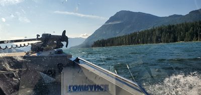 For FishingMagician.com, I'm Eric Granstrom. Last winter while Marion and I were vacationing on Whidbey Island, she introduced me to a friend of hers who has a cabin on Lake Wenatchee. Brett offered access to it and his dock if we were interested during the sockeye fishery. Since it opened last week, I had Marion reach out and see if the offer still stood. Sure enough, Brett was more than happy to have us tie the boat up to his dock. After working on the fuel system for the main motor and figuring out it was a cracked fuel bulb, we loaded up and headed for Lake Wenatchee Sunday afternoon. I figured the crush of people at the launch at the State Park would be less by then and we could launch undeterred. We drove right to the launch and found just a single boat tied to the dock with engine troubles. Once I finally got launched around him, I was off through the shallows and around the island to beat my way up the lake. The wind was blowing 15-to-20 mph and it was rough, but I got it there. Not to fish! Until next time, Good Fishing!
