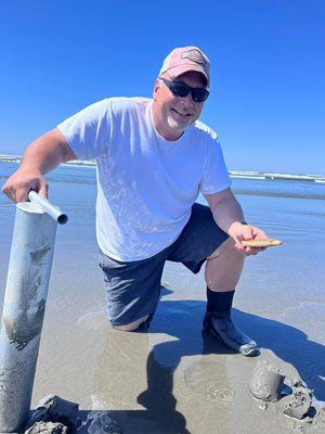 For FishingMagician.com, I'm Eric Granstrom. Marion and I left after work Friday to make the 265-mile drive to the Washington coast to join my sister, soon-to-be brother-in-law and friends for a weekend of clam digging. The others were already at camp long before we arrived and had clammed on the beach where we stayed in Oceana. My sister Sonja reported that she stuck to her guns and worked hard for her 20-clam limit. The boys decided to bag it after 5-clams and head back to camp for beers. Our pilgrimage was delayed by typical Friday traffic on I-5 and we arrived in camp just before they closed the gate at the Thousand Trails at 10pm. The folks there were really accommodating as we called periodically throughout our adventure to let them know we were stuck in traffic. After a good night's sleep, we ventured north towards Moclips. The first stop landed us in sand shrimp heaven. Our second try put us on the clams with Marion finding the first one. Then it was game-on as we all limited out in about an hour. Back at camp, we cleaned 120 clams, ate like kings and slept well. Until next time, Good Fishing!