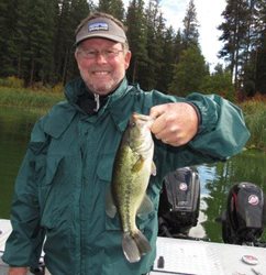 Tom Verschueren shows off one of the largemouth bass he caught at Fish Lake. He found the Senko that made our day--copper-flake watermelon.