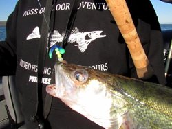 Brian Nielson of BJs Guide Service holds up one of the walleye we caught while trolling bottombouncers and Butterfly blades on Moses Lake.