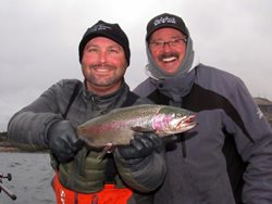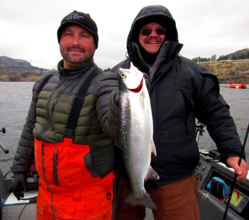Austin Moser and I pose with a nice rainbow that was caught near the can line above Grand Coulee Dam.