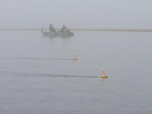 The fog was so thick on our last trip to Lake Roosevelt we could barely see this boat trolling at the can line.