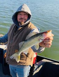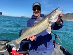 My fishing buddy James Lebow shows off one of several nice walleye he landed while fishing on Potholes Reservoir.