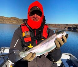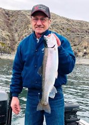 Here is Keith Archibald with a nice rainbow caught trolling on Lake Roosevelt at Spring Canyon.