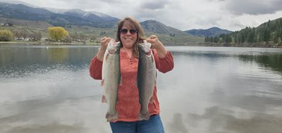 For FishingMagician.com, I'm Eric Granstrom. Is it skill, or luck? Some say you create your own luck. Others say it's just a happenstance of the universe. When it comes to fishing, I think it's both. Marion and I lucked into some great fishing last Sunday at Pearrygin Lake near Winthrop. Eight of the ten fish we caught were your typical fresh plants, between 8-and-12 inches long. The other two, as you hopefully saw in the video on Tuesday, were lunkers measuring 20-and-a-half-inches each. Marion caught both of the big ones, which drew plenty of attention from nearby anglers. After the second one was landed, a gentlemen who'd been fishing without luck on the dock to our right came over to ask our secret. I told him rainbow sparkle Power Bait with a garlic scent. He said that's what he was using. I added that I was using a small dough-bait treble hook with a 4-foot leader on a slip sinker. He said he had all that but the hook. I offered him my last one. So how did we land some big ones and our limit? Luck. And a little experience. But mostly luck. That's fishing. Until next time, Good Fishing!