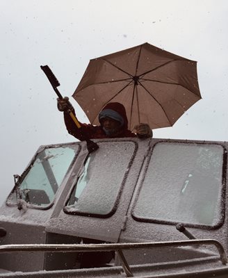 This is one of my favorite photos of my wife Eileen. She is scraping the snow from the boat windows at the launch at the State Park a couple of years ago.