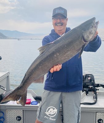 I was to meet my friend James Lebow at the launch in Brewster at 4 a.m., so I was up at 1:30 on Wednesday morning. Traffic at the ramp wasn’t too busy, so we arrived at the fishing grounds at about 4:. There was a fair number of boats trolling off the mouth of the Okanogan River and in the channel below it, and we could already see nets out and sockeye being landed. We were focused on getting kings to start. We had an old style Twisted Sister Super Bait on one downrigger, a plug cut style Hot Tamale on the other downrigger rod, and a plug cut style Mountain Dew out the back on a 12 ounce lead ball. We had a king on just after 5, and that was the first of three kings that we lost right at the boat. If there is a way to screw up netting a king, I did it. It was terrible. The king bite has slowed a bit, so we decided to put a sockeye rig on the back rod, on a four ounce lead ball. Now we were busy. While we were working our way to a limit of sockeye we hooked another king, and James “changed the dynamic” by grabbing the net and landed the king. It was a frustrating but terrific day on the Brewster Pool.