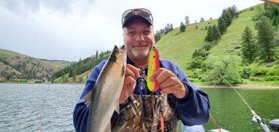 For FishingMagician.com, I'm Eric Granstrom. First of all, thanks for all the feedback on whether you bleed your fish or not. Seems the overall sentiment is, no matter the species, bleeding fish make better table fair. I'm in! Secondly, it was a year ago that Marion and I were spending a great weekend fishing at Conconully in Okanogan County. If you haven't taken the opportunity to fish and visit here, you're missing the boat. Conconully has two lakes to fish and plenty of camping available. On the lower reservoir, there's a large State Park, Liar's Cove and Shady Pines Resorts. And, if you check online, there's quite a few places you can rent for the weekend in town if you don't want to tent or RV it. The upper lake is a much bigger body of water and has a small State Park available for camping and a paved launch. If you check out oyr Facebook page, you'll see a photo of me with a whopper kokanee I caught in the upper lake last year. It's filled with kokanee, rainbow and a ton of smallmouth bass. And, this time of year the surrounding hillsides are gorgeous. Until next time, Good Fishing!
