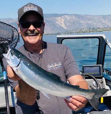 I wanted to get one more day of kokanee fishing in before the opening of salmon season, so I had my buddy Bill Hansen meet me in Wenatchee at 5:30 Monday morning. I know that people are getting limits in a very short time if they are on the water at first light. I felt we were in no hurry and thought we could get a bunch, even if we left later. We started fishing at the bottom end if Mill Bay, where we found fish the last time we were out, and sure enough, they were still there. We had a bunch of fish in the first hour or two and then it got slower and slower. After a particularly long interval with no action. I changed the colors that we were using. I went from Kokabow pink blades and spinners to orange, which has always been my favorite on Chelan. Bingo. We got into fish again. I even got an 18-incher. Probably my biggest ever on Chelan. We were beating the heat due to my Artic Cove mister, and when the second battery died, we headed for the dock. We had 18 very nice kokanee in the cooler.