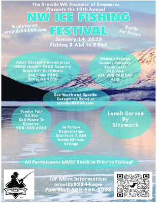 For FishingMagician.com, I'm Eric Granstrom. I was contacted by Pamela Shull from the Oroville Chamber last week asking if I could mention the NW Ice Fishing Festival this weekend. Of course I can! Dave had my Dad and I fill in for him covering the festival nearly 10-years ago. This will be the 19th Annual NW Ice Fishing Festival, which takes place on Sidley Lake in Molson, just outside of Oroville. It all kicks off with the all-you-can-eat pancake breakfast at 7 o'clock in the Molson Grange. That's also where you register, which costs $30 for adults and $15 for kids. You'll be given an entry number, which also gets you in for raffle prize drawings. The prizes included $500 cash and $500 Country Store Gift Certificate for the adults. 2nd place is $300 and 3rd $200. You can learn more about the youth prizes on the chamber's website at oroville98844.com. Fishing goes from 8am to 3pm with prizes and lunch after at the Grange Hall. Word has it that they've been catching fish up from 15-to-18-inches so it could take a big limit to win. The people of Molson and Oroville are outstanding and you'll have fun. Until next time, Goof Fishing!